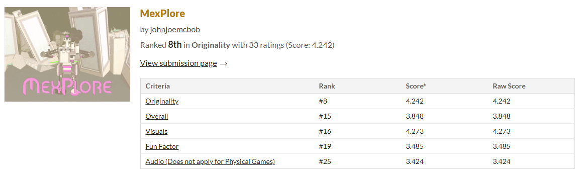 Now that the voting period of Mech Jam II has closed, I want to look over how successful my entry was compared to my own expectations and how it was received by commenters.