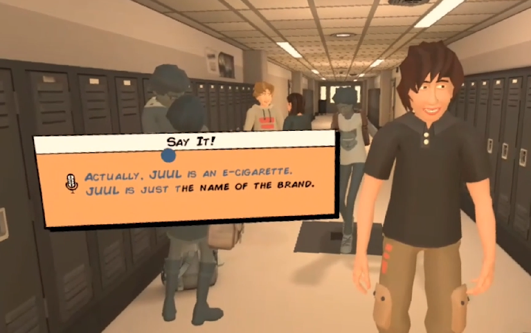An educational virtual reality game aimed at teens to help teach how to properly refuse peer-pressure, specifically relating to vaping and e-cigarettes. Created for the play4REAL Lab at Yale's Center for Health & Learning Games.